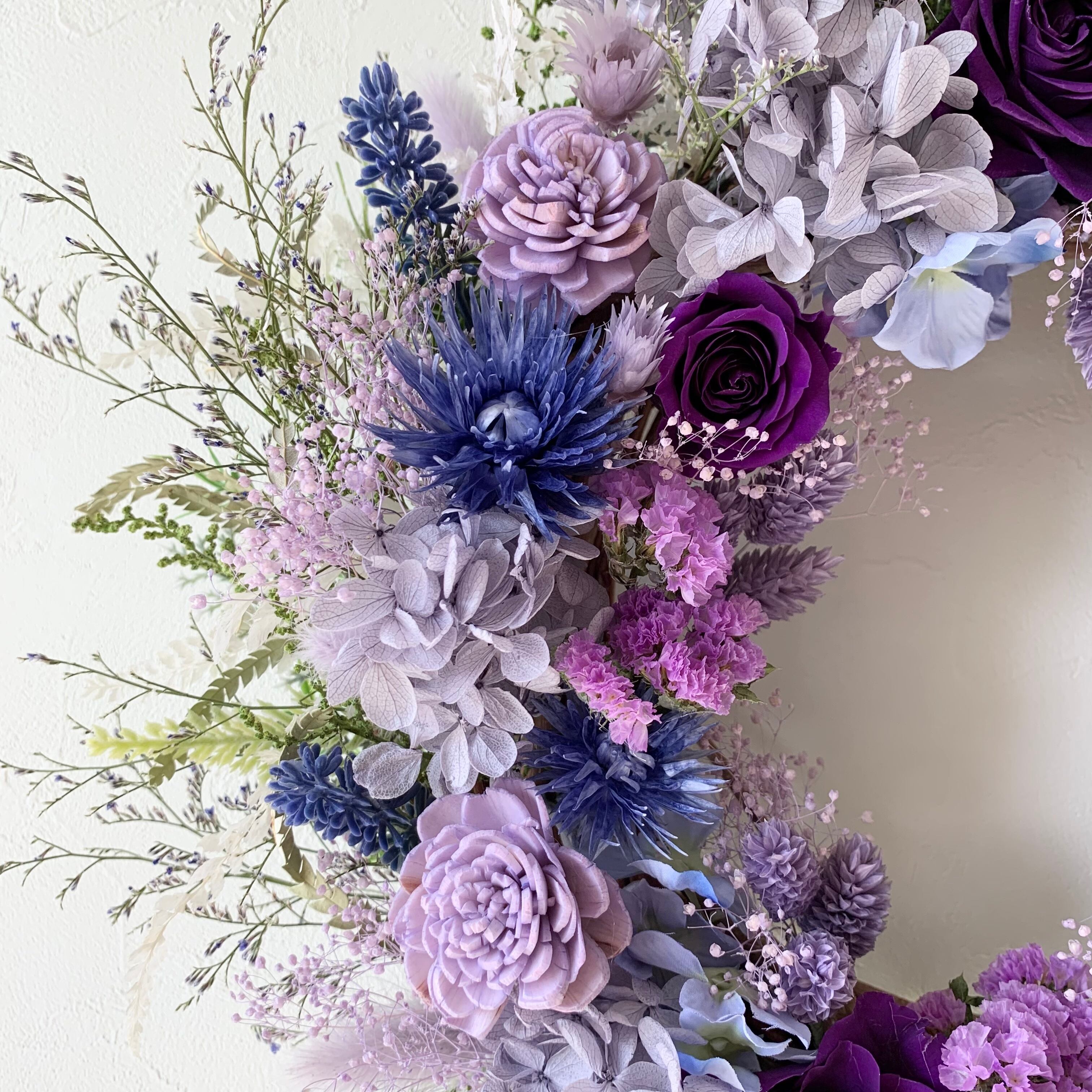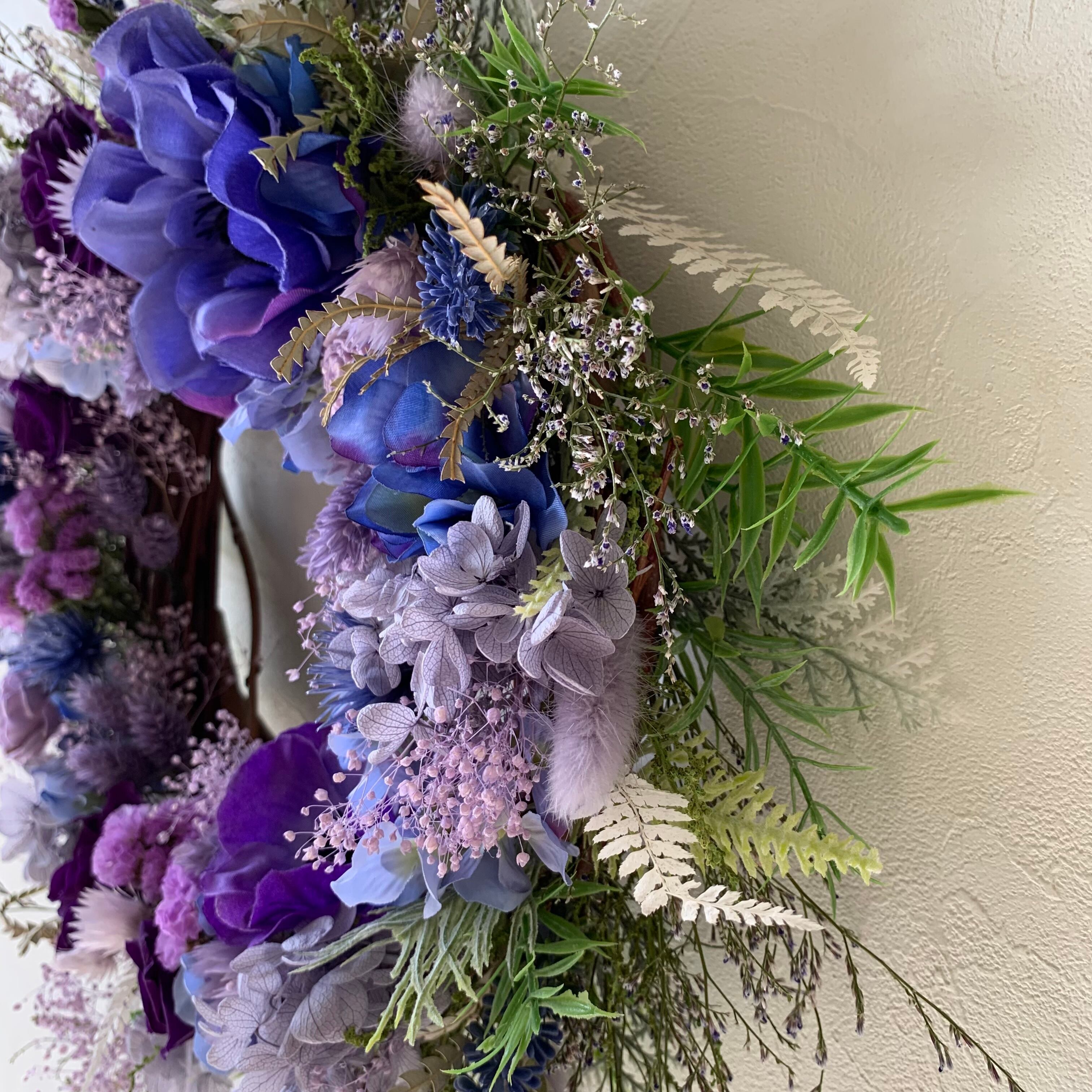 古希や喜寿のお祝いにもぴったりの、紫が綺麗なフラワーリースができました!!