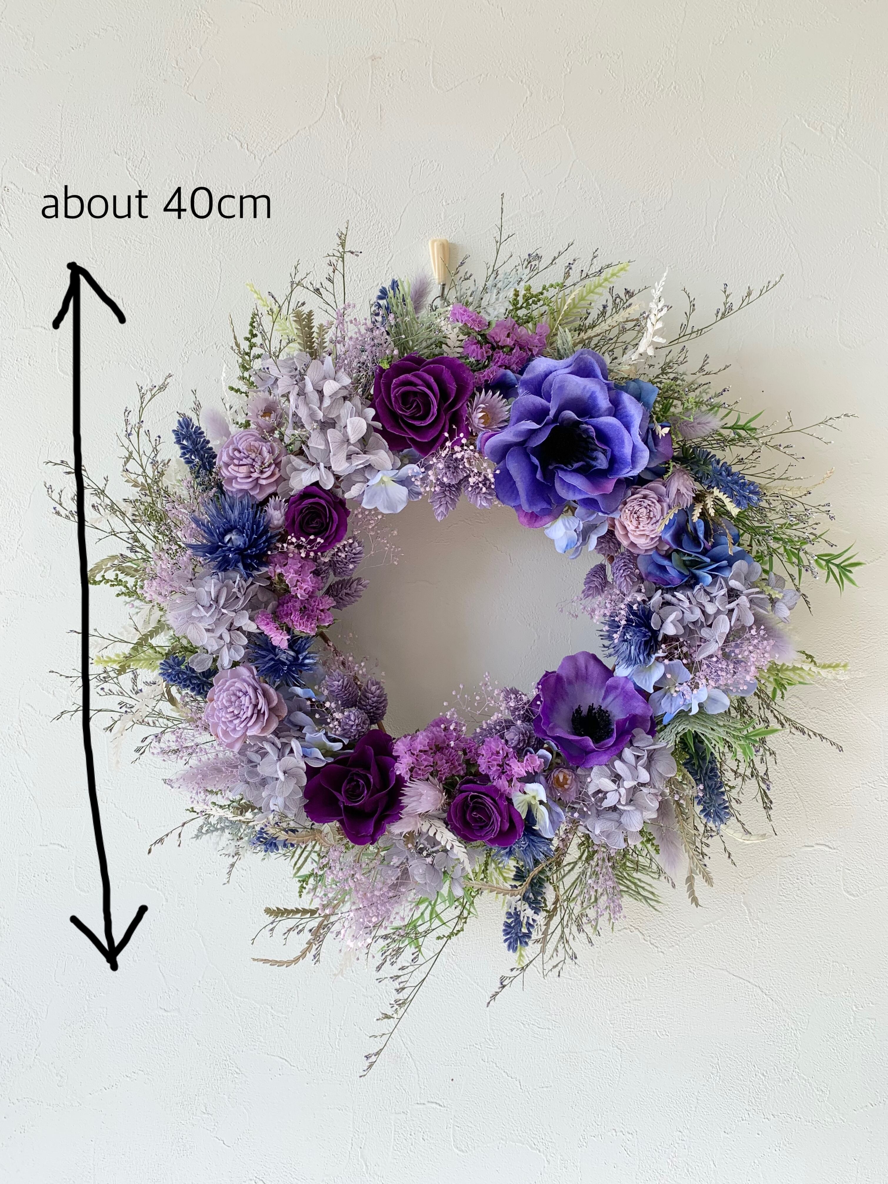サイズも40cmほどあり、人生の大切な節目の贈り物として、おススメのボリュームあるリースです♬